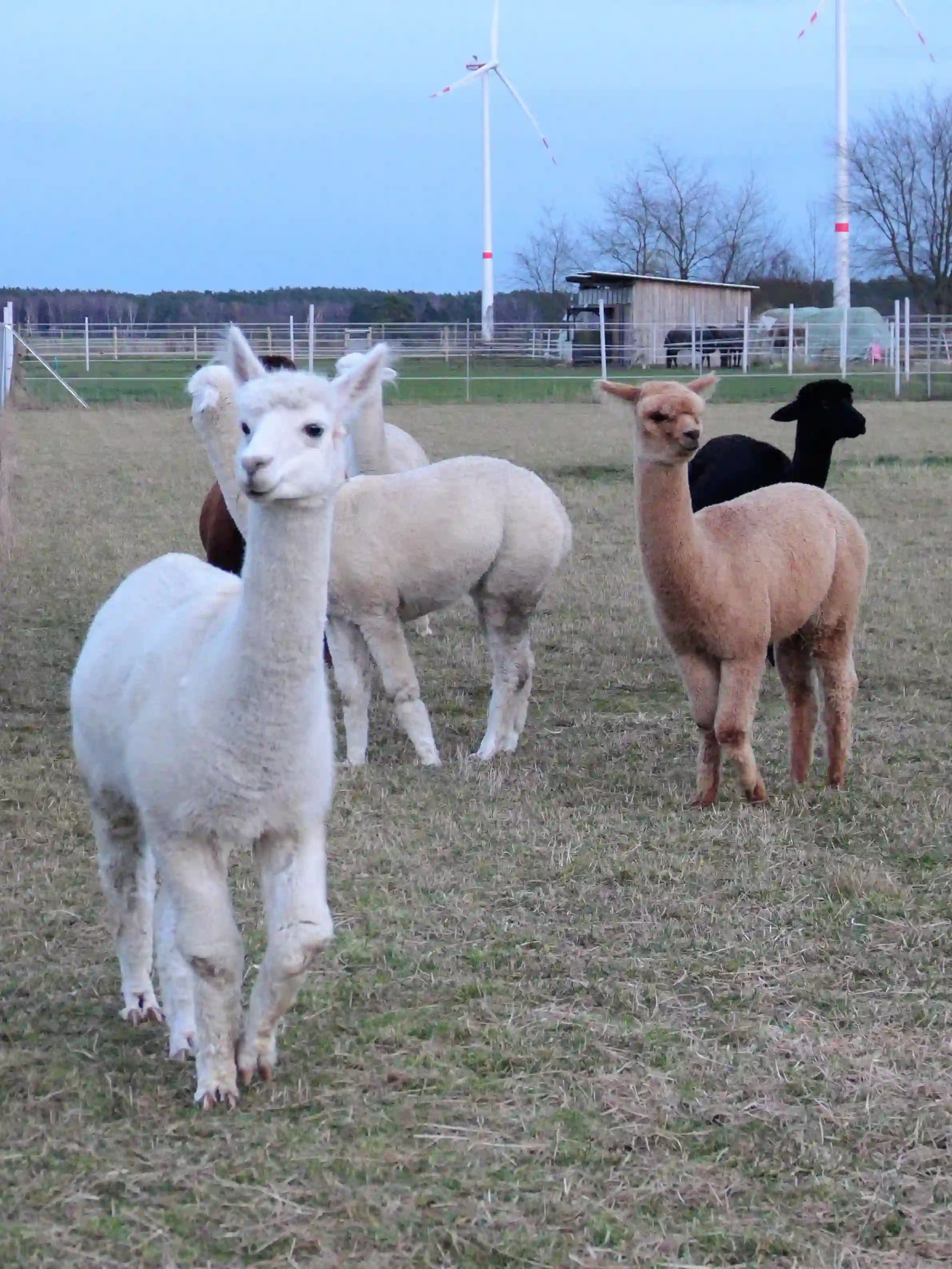 Kakao & Geschichten – gemütliche Familienzeit mit Alpakas Tauche ein in eine besondere Stunde voller Wärme, Fantasie und flauschiger Gesellschaft. Bei unserem Event „Kakao & Geschichten mit Alpakas“ machen wir es uns gemeinsam mit den Kindern auf Heu gemütlich. Während wir heißen Kakao genießen, hören wir schöne Geschichten und verbringen wertvolle Zeit mit unseren sanften Alpakas. Natürlich dürfen die Tiere auch gefüttert und gestreichelt werden. Wichtig: 1 Buchung = 1 Teilnehmer Ablauf: Das Event findet je nach Wetter auf unserer Alpakawiese oder in unserem Stall statt, wo du die Tiere hautnah erleben kannst. Gemeinsam machen wir es uns auf Heu bequem und genießen eine warme Tasse Kakao und ein paar Kekse. Währenddessen lauschen die Kinder ein paar kurzweiligen Geschichten. Außerdem habt ihr Zeit, unsere Alpakas aus der Nähe zu beobachten, Fotos zu machen und sie natürlich auch zu füttern. Verpflegung: • Kakao und Kekse Dauer: Insgesamt dauert das Event ca. 1 Stunde. Für wen geeignet: Perfekt für Familien mit Kindern, Großeltern mit Enkeln oder kleine Gruppen, die ein gemütliches und kindgerechtes Herbst- und Wintererlebnis mit Tieren suchen. Wichtige Hinweise: • Bei zu schlechtem Wetter (z. B. starkem Regen oder Unwetter) kann es sein, dass das Event abgesagt wird. Du wirst spätestens am Vorabend oder am Morgen des gebuchten Termins informiert. • Hunde können leider nicht mitgebracht werden, da unsere Alpakas sehr empfindlich auf sie reagieren. • Kinder unter 2 Jahren dürfen kostenlos dabei sein! • Bitte zieht euch warm und wetterfest an, da das Event teilweise draußen stattfindet. • Damit alle Kinder sicher und betreut sind, bitten wir, dass pro drei Kinder mindestens eine erwachsene Begleitperson dabei ist. Genieße wertvolle Familienzeit und erlebe mit Kakao, Geschichten und Alpakas einen unvergesslichen Tag. Jetzt „Kakao & Geschichten mit Alpakas“ buchen und gemeinsam magische Erinnerungen schaffen! Info zur Anfahrt: Fahrt in Boitzenhagen auf die Radenbecker Straße und etwa 150 m hinter dem Ortsausgang dann rechts in den Feldweg. Die ausgeschilderte Parkmöglichkeit befindet sich auf der rechten Seite direkt an unserer Weide. Bitte wartet dort bis ihr von uns abgeholt werdet! Vielen Dank!