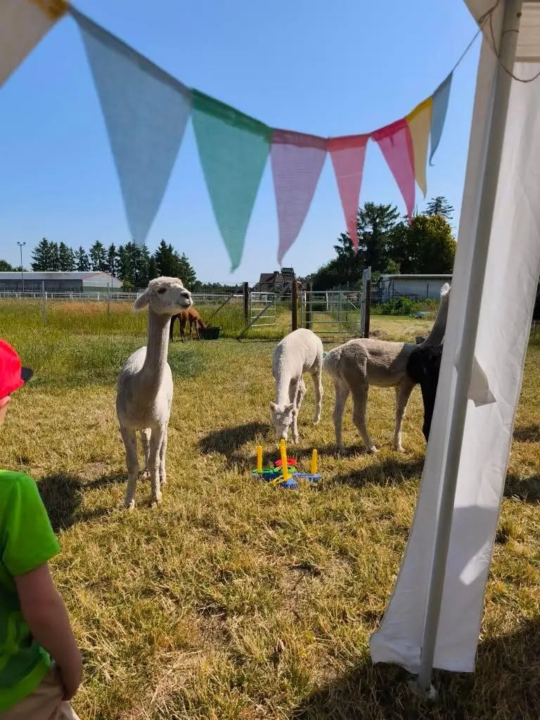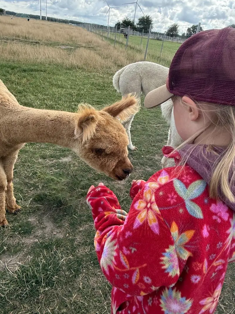 Ein flauschiges Erlebnis, das begeistert! Mach den Geburtstag deines Kindes unvergessen, in dem du ein Meet & Greet mit süßen Alpakas arrangierst. Unsere Alpakas sorgen für ein außergewöhnliches Programm für den nächsten Kindergeburtstag. - Kennenlernen und gemeinsames Versorgen der Alpakas - Bastelaktion: Kleine Alpaka-Erinnerung basteln Exklusives Erlebnis: Der Kindergeburtstag findet in privater Runde statt – nur für dein Geburtstagskind und seine Gäste. Dauer des Events: 1,5 Stunden Wichtige Hinweise: • Es muss mindestens eine erwachsene Aufsichtsperson beim Event dabei sein. • Das Event ist geeignet für: Kinder ab 6 Jahren, die Freude an Tieren und Natur haben. Das Konzept ist am besten für Kinder ab 6 Jahren geeignet, wenn die Kinder jünger sind, brauchen sie Unterstützung von Mama/Papa oder anderen Begleitpersonen! • Maximale Teilnehmerzahl: 12 Kinder • Bei schlechtem Wetter (z. B. starkem Regen oder Unwetter) wird das Event abgesagt. Du wirst spätestens am Vorabend oder am Morgen des gebuchten Termins informiert. • Hunde können leider nicht mitgebracht werden, da unsere Alpakas sehr empfindlich auf sie reagieren. Schenke deinem Kind und seinen Freunden einen Tag voller tierischer Erinnerungen und unvergesslicher Flauschzeit. Jetzt Kindergeburtstag mit Alpakas buchen und zufriedene Kids bei einer exklusiven Flauschzeit erleben! Info zur Anfahrt: Fahrt in Boitzenhagen auf die Radenbecker Straße und etwa 150 m hinter dem Ortsausgang dann rechts in den Feldweg. Die ausgeschilderte Parkmöglichkeit befindet sich auf der rechten Seite direkt an unserer Weide. Bitte wartet dort bis ihr von uns abgeholt werdet! Vielen Dank!